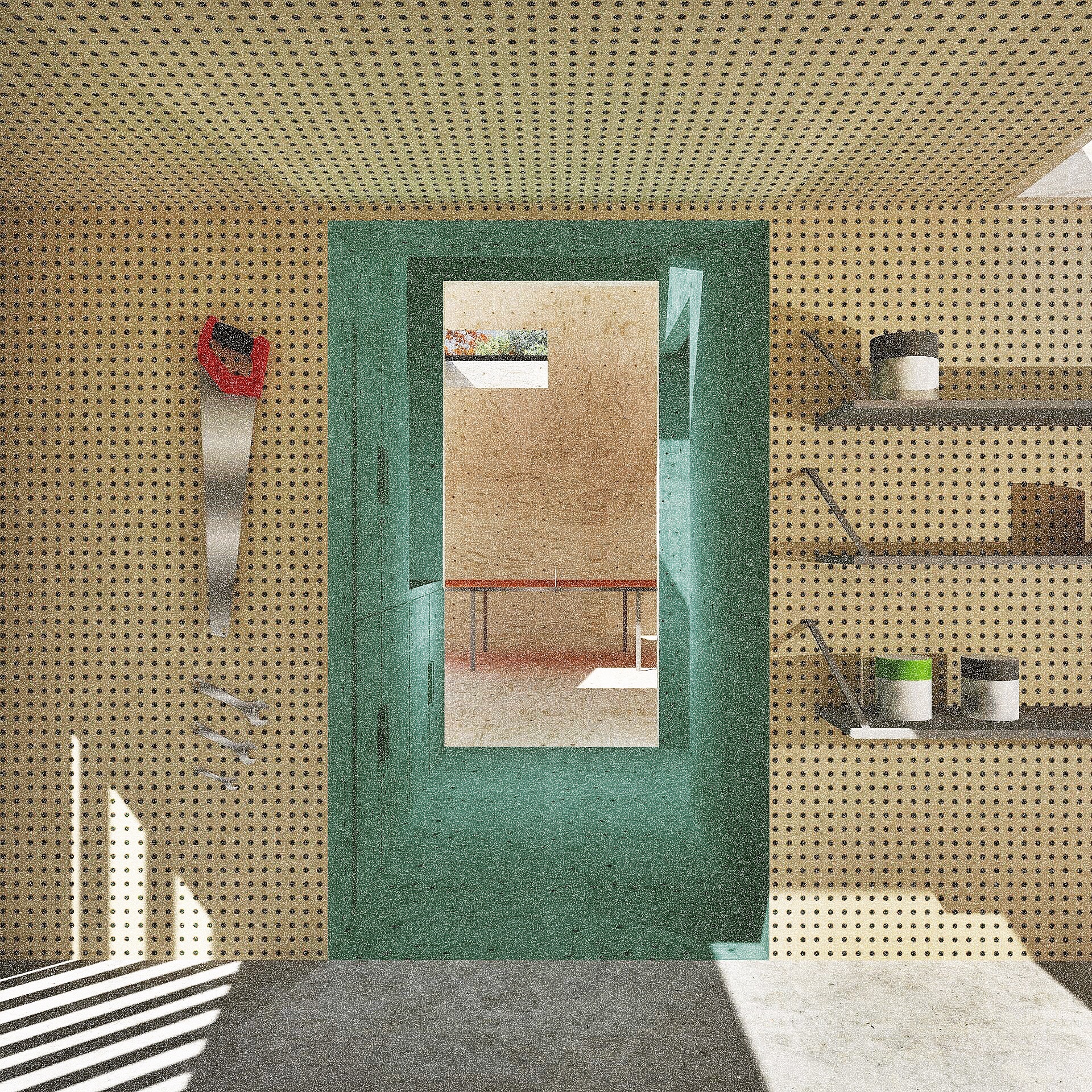 rotates the form of the existing shed, to create a large play space, yoga